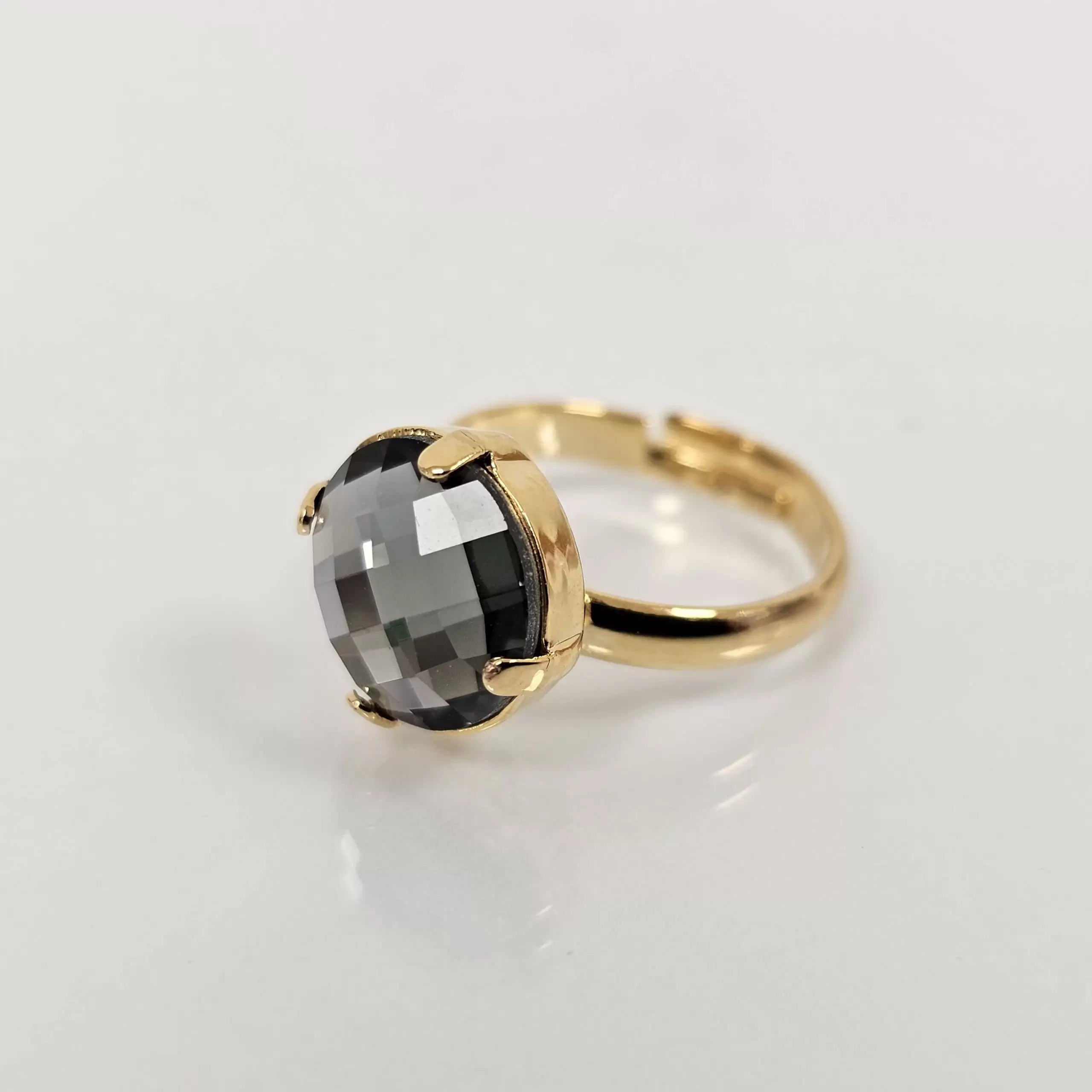 טבעת נפתחת מאחור, מתכווננת לכל מידה. קוטר האבן 1 ס”מ.