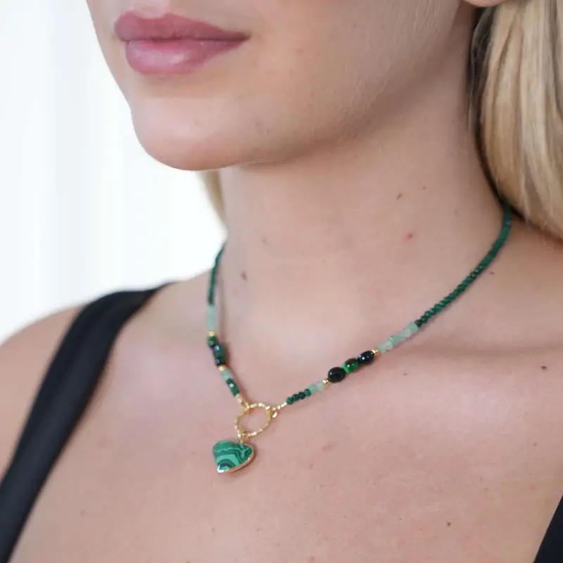 שרשרת אבן לב – ירוק מלכית
