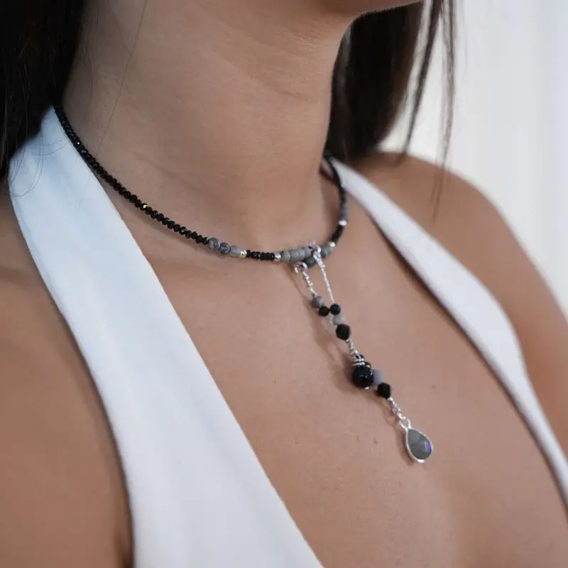 שרשרת חישוק שובלים – שחור טורמלין